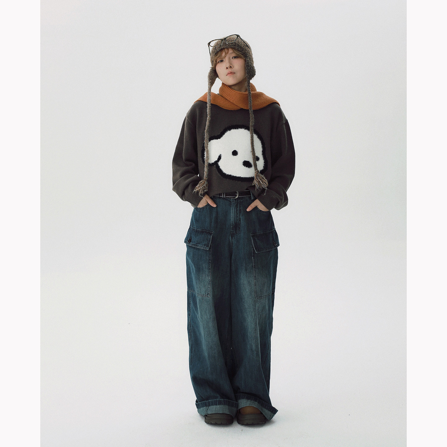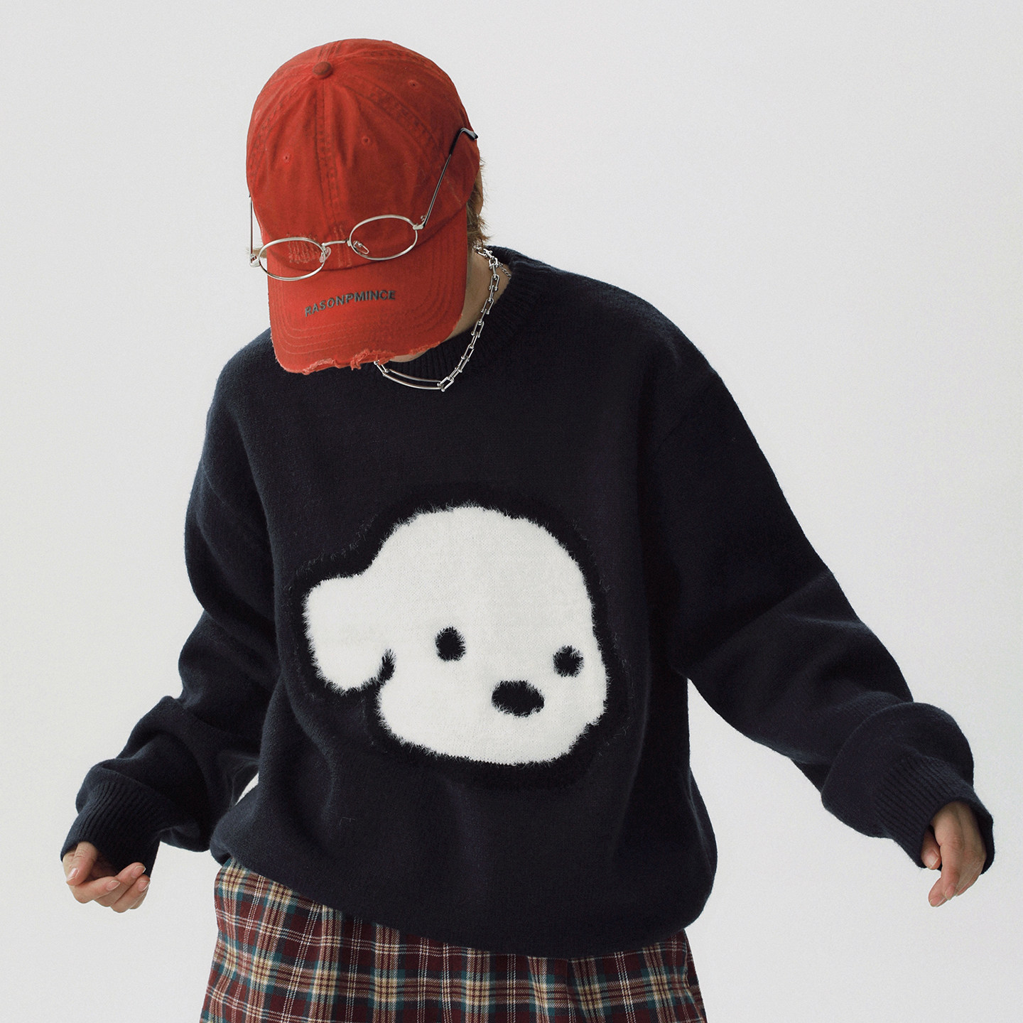 您的位置: STILLYOU原创趣味卡通毛绒绒小狗头像圆领毛衣男女同款宽松针织衫