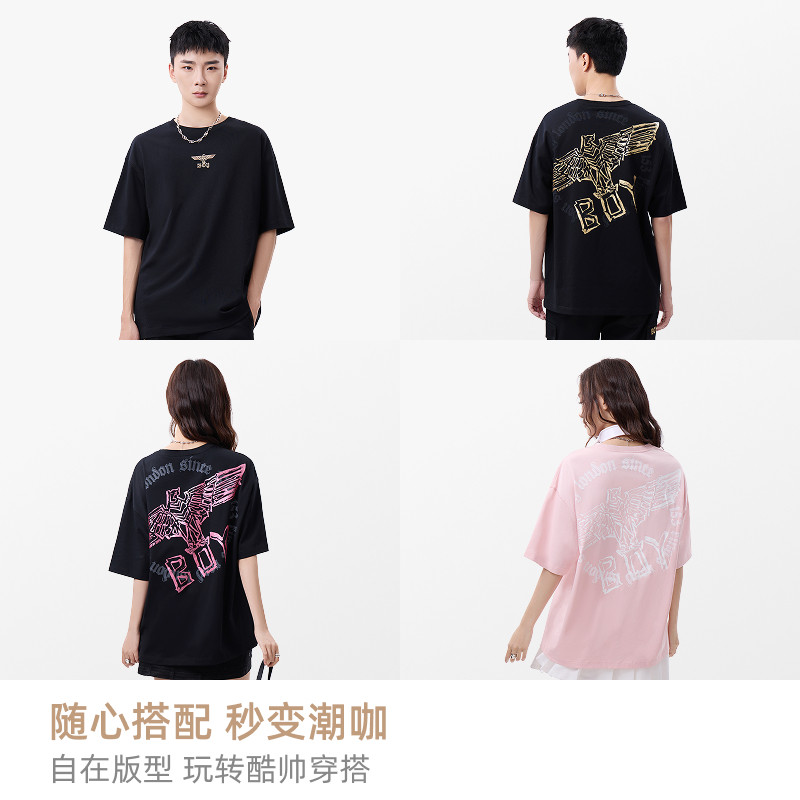 您的位置: 【黑粉风暴】BOYLONDON短袖男女同款翅膀夏季黑色潮牌T恤N01911