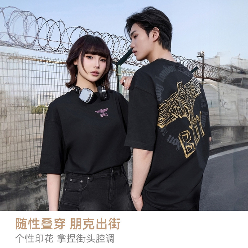 【黑粉风暴】BOYLONDON短袖男女同款翅膀夏季黑色潮牌T恤N01911