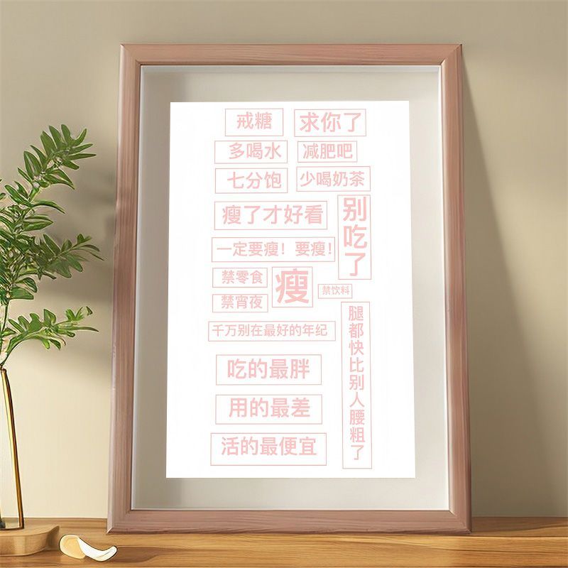 您的位置: 减肥装饰摆件激励自我励志瘦身控制自己满屏平铺字画桌面相框摆台