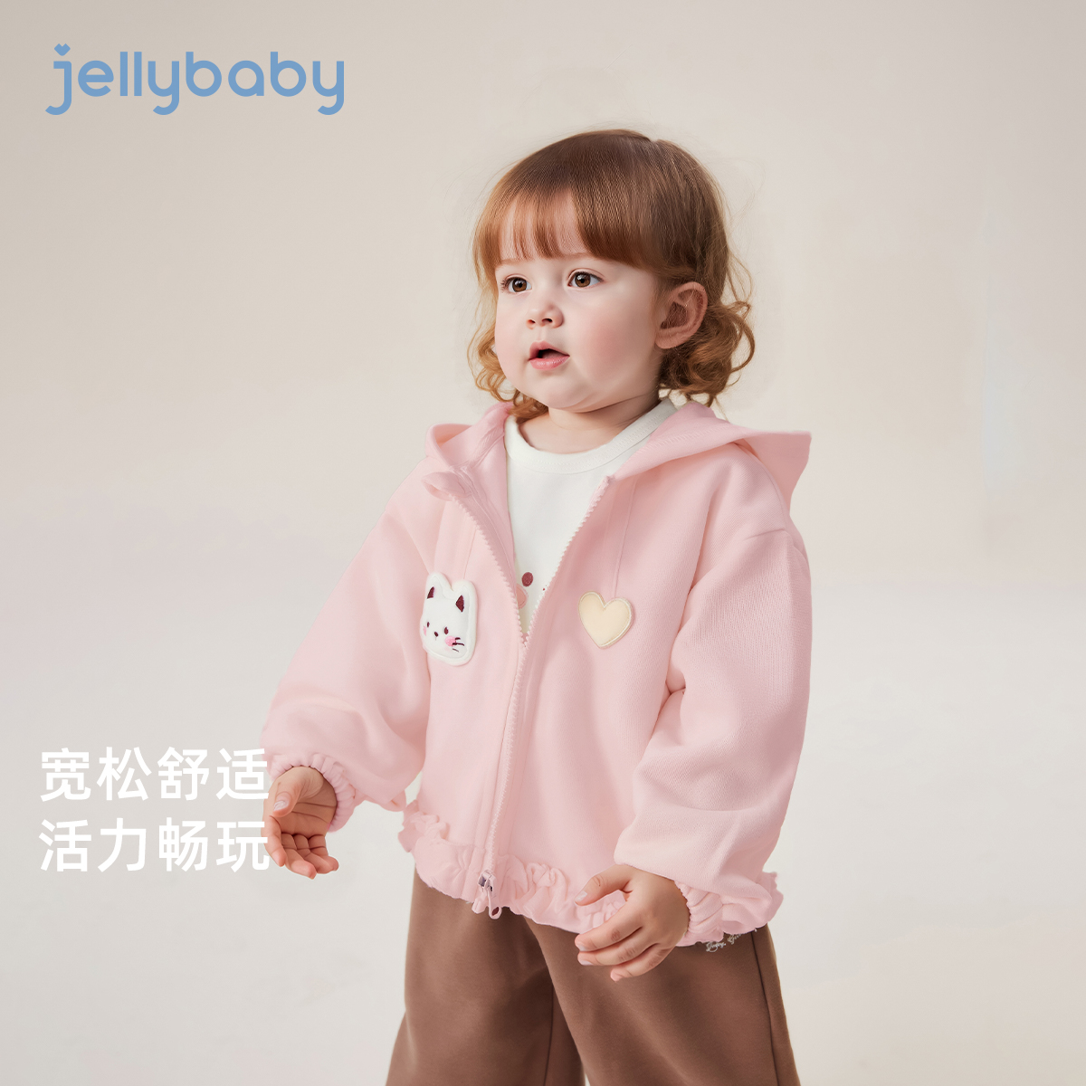 [7A抗菌]女童秋季外套宝宝可爱猫咪连帽上衣小童衣服秋装儿童开衫