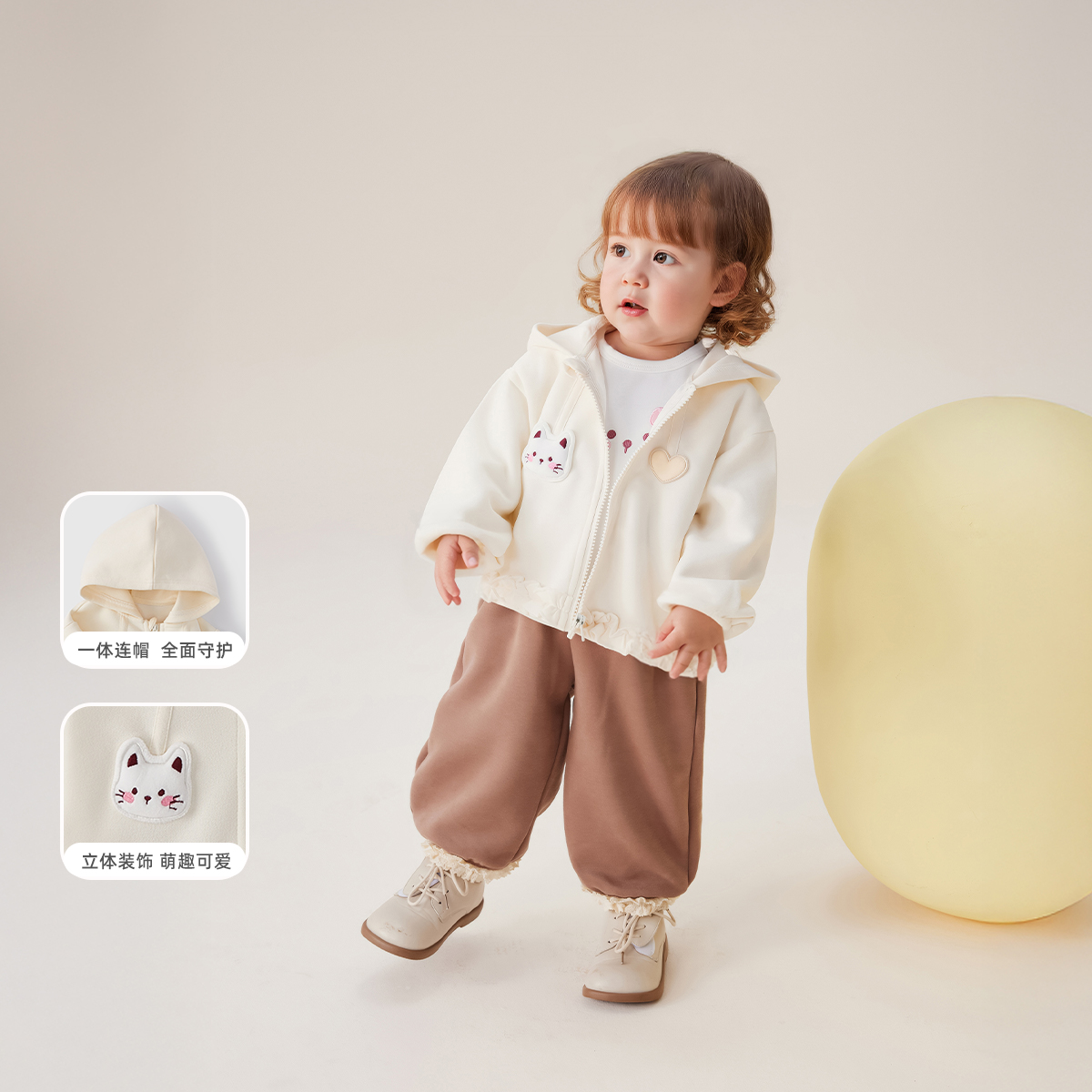 > [7A抗菌]女童秋季外套宝宝可爱猫咪连帽上衣小童衣服秋装儿童开衫