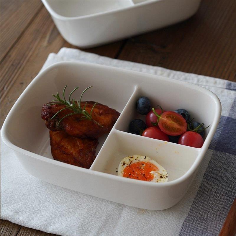 您的位置: 白色简约分格盘釉下彩便当陶瓷餐盒出勤带饭盒轻食减肥分餐盘纯色