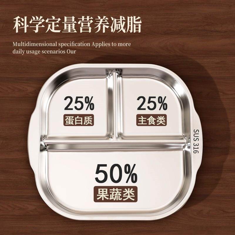 211减脂分格餐盘大人不锈钢盘子减肥专用健身孕妇定量三格分餐盘