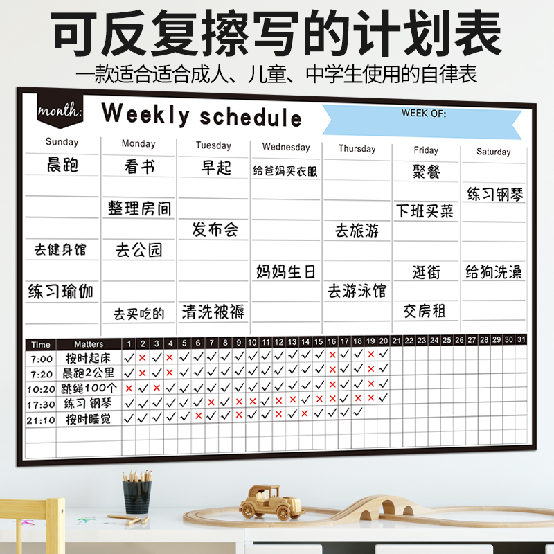 您的位置: 月计划表墙贴磁吸可擦白板人自律减肥打卡冰箱贴门贴每日时间安排每日规划儿童自律神器日程时间管理记录表成