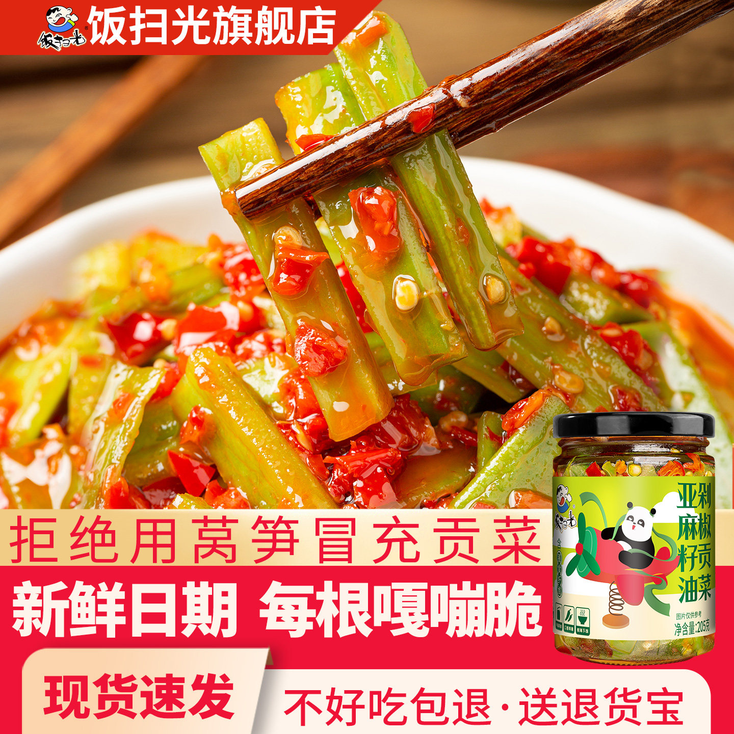 您的位置: 饭扫光剁椒贡菜瓶装下饭菜农家咸菜香辣外婆菜开味酱菜即食拌饭