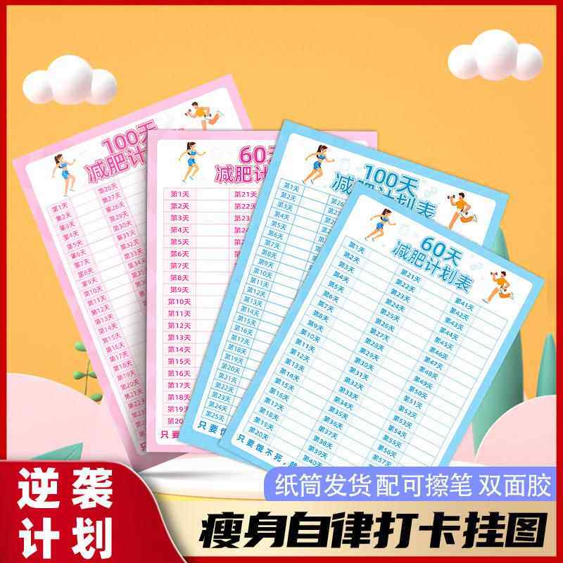 淘宝天猫60/100天减肥打卡记录表瘦身自律打卡健身拖延症监督体重管理计划优惠券折扣价格–彩云间