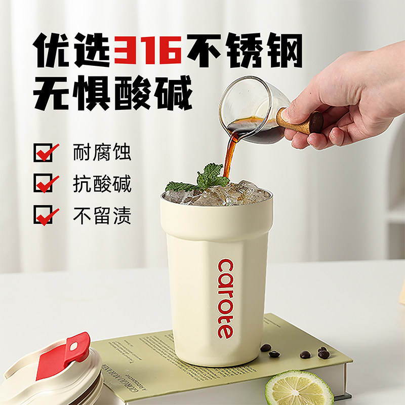 > 卡罗特咖啡杯不锈钢保温杯女2024新款保冷杯子男生随行杯便携水杯