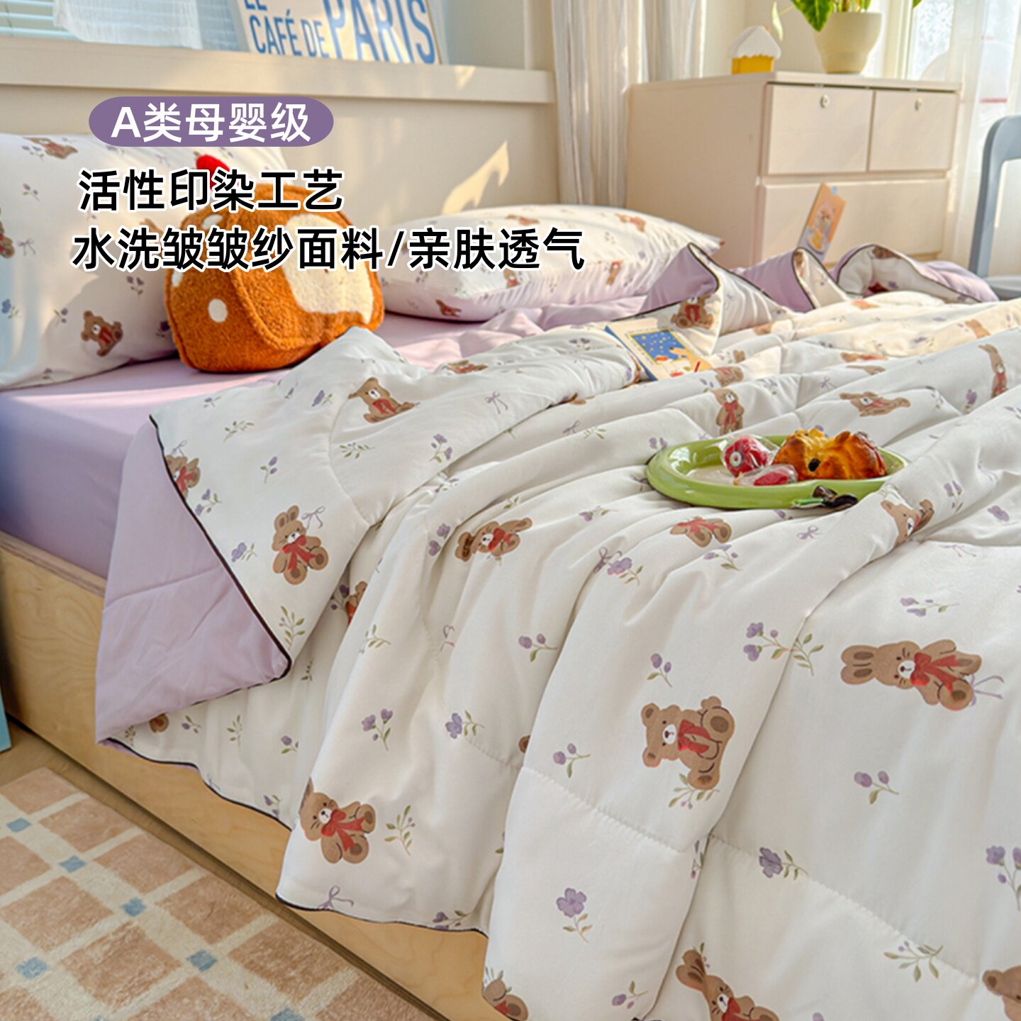 夏季夏凉被A类单双人儿童被空调被抗菌防螨水洗皱皱纱可水洗夏被