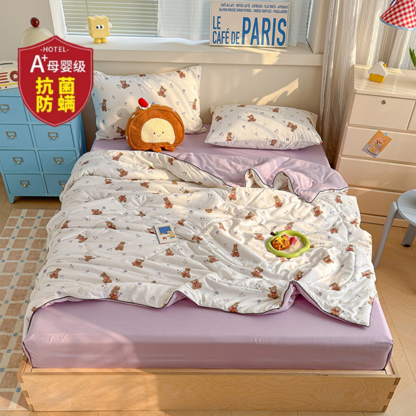 > 夏季夏凉被A类单双人儿童被空调被抗菌防螨水洗皱皱纱可水洗夏被