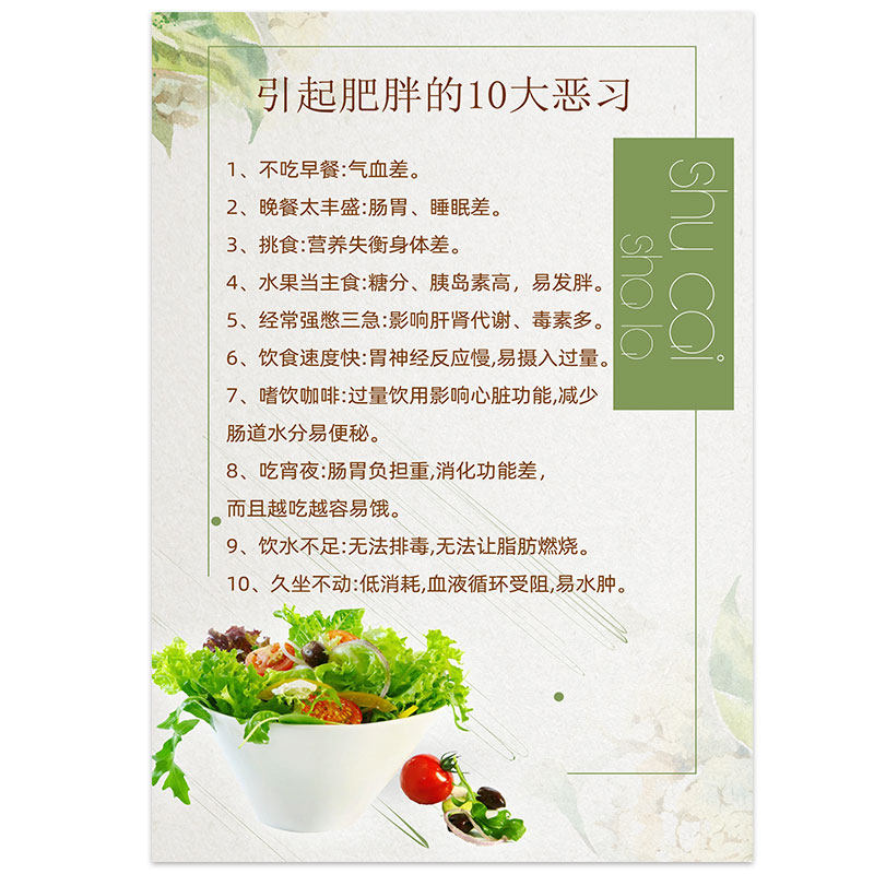 您的位置: 减肥励志海报挂画健康食谱瑜伽馆美体塑形工作室易肥胖恶习装饰画