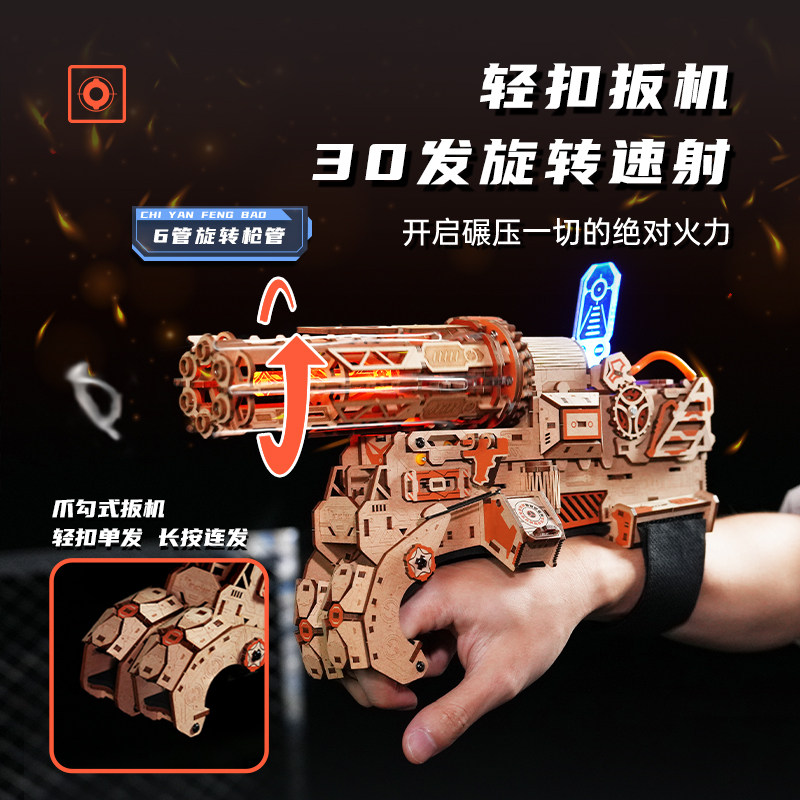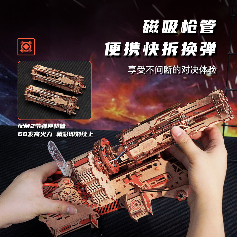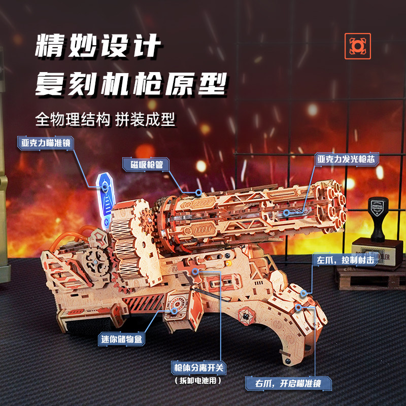 同趣炽焰风暴拼装加特林机枪diy手工模型男孩玩具枪生日礼物木质