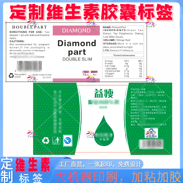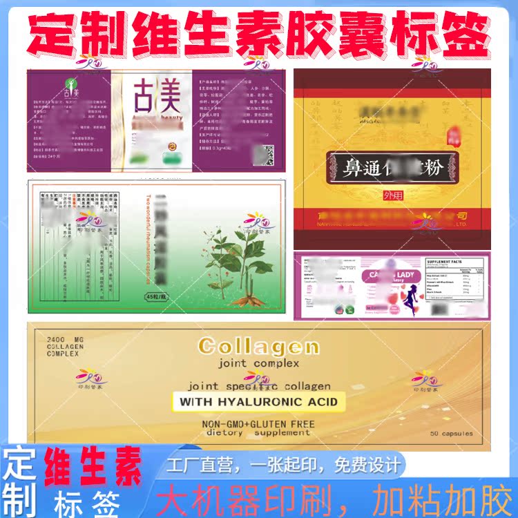 定制保健胶囊瓶贴不干胶维生素减肥酵素饮品防水标签补气益气丸