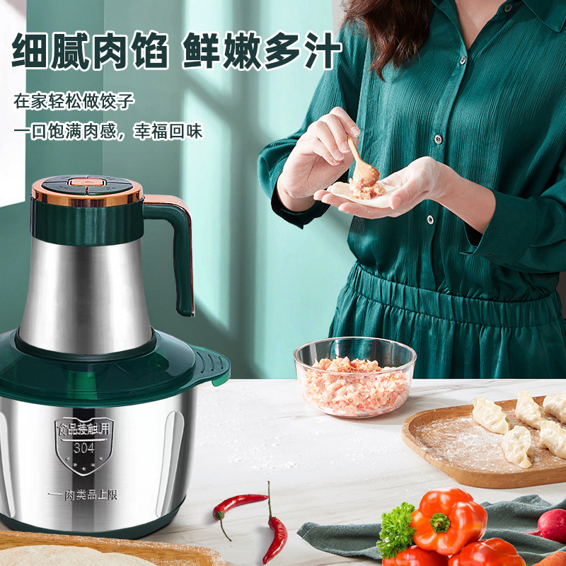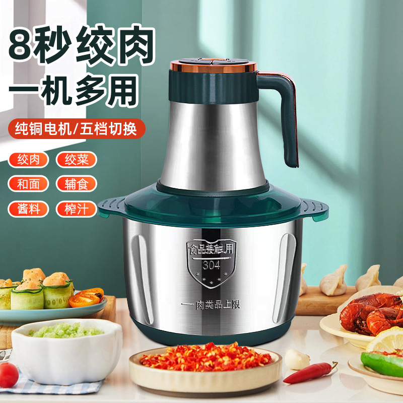 > 新款家用实用绞肉机不锈钢电动多功能料理器绞菜绞肉和馅榨汁
