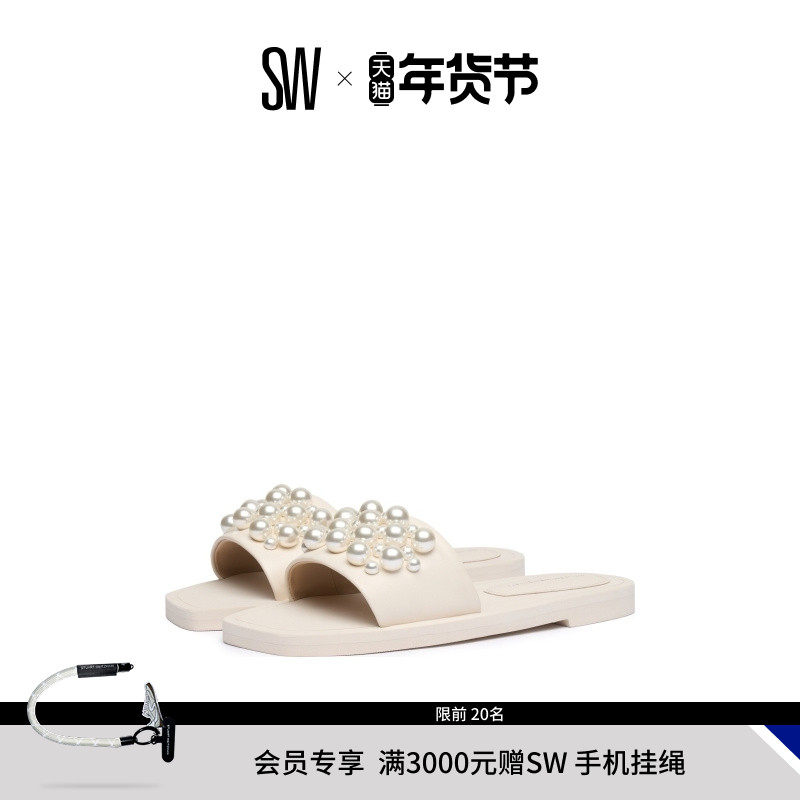 SW GOLDIE SLIDE 新款珍珠装饰平底外穿拖鞋女一字拖