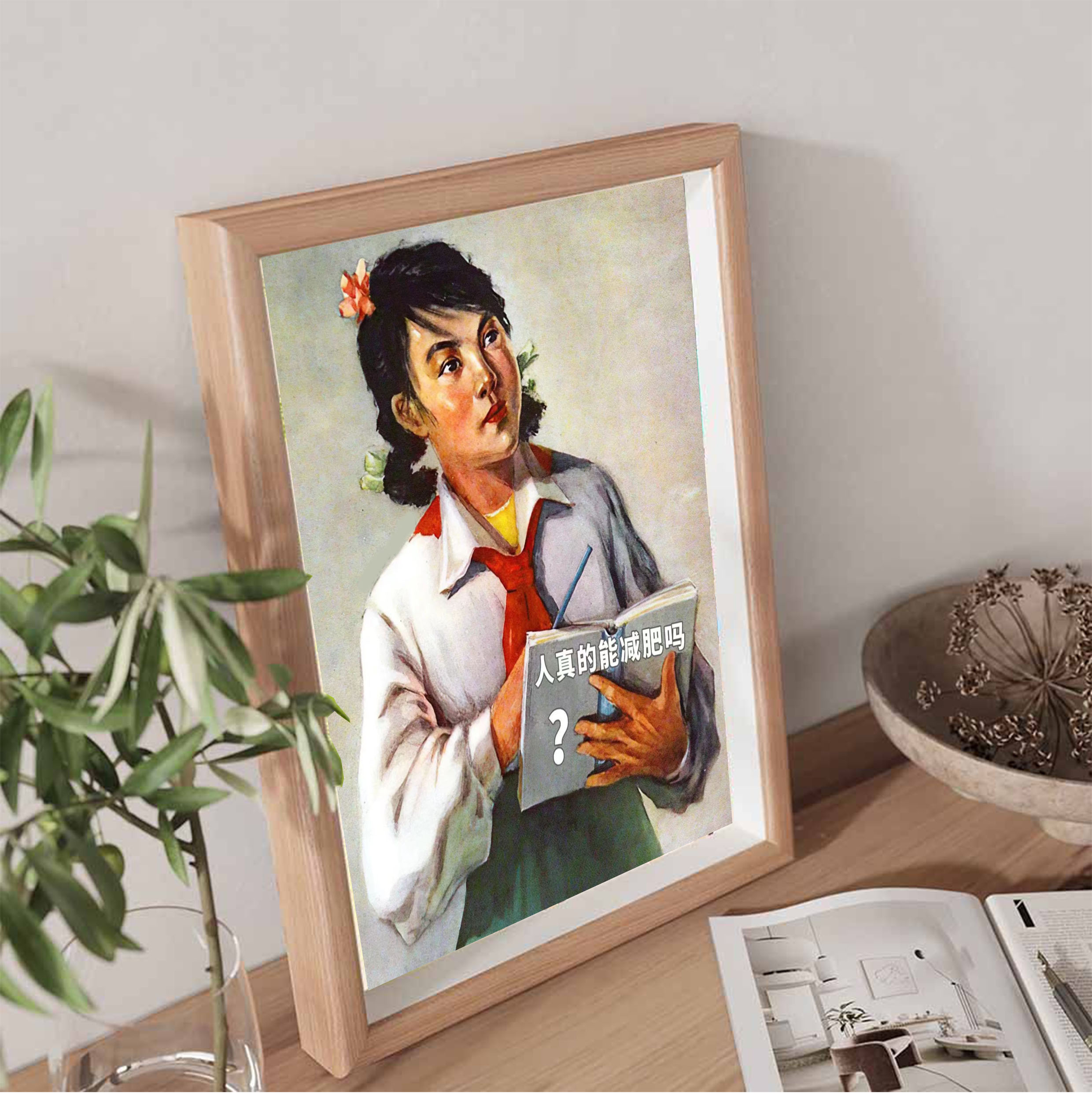 人真的能减肥吗减肥励志搞笑实木相框装饰画桌面摆件艺术画挂墙
