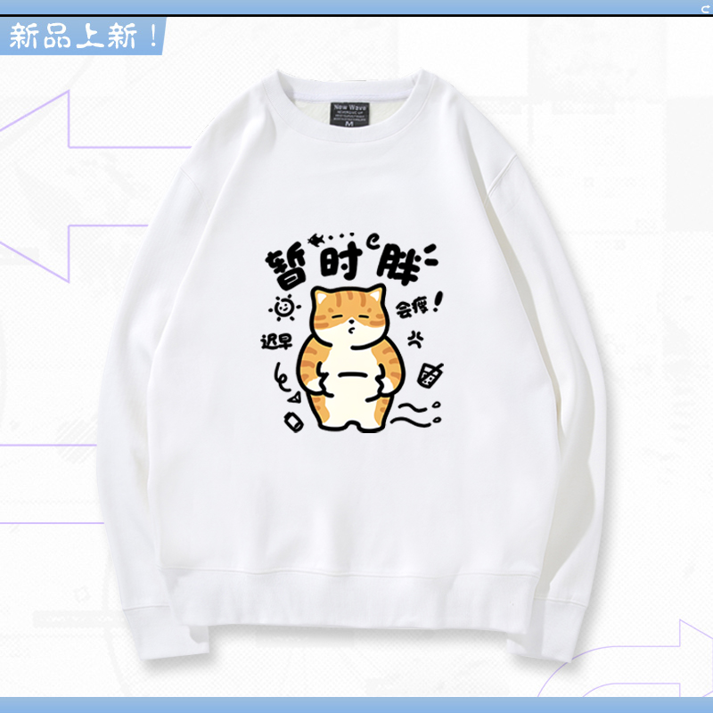 暂时胖减肥小猫可爱男女生秋冬季休闲百搭宽松圆领加绒卫衣LN