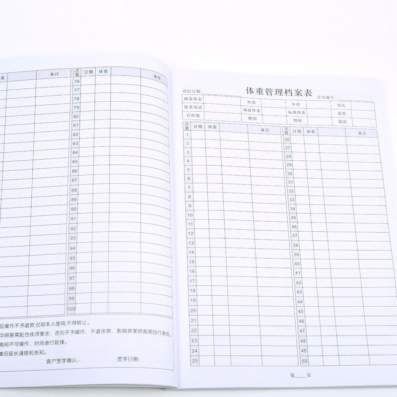 您的位置: 顾客减肥记录本 瘦身形体健康档案本客户体重塑形信息管理登记表
