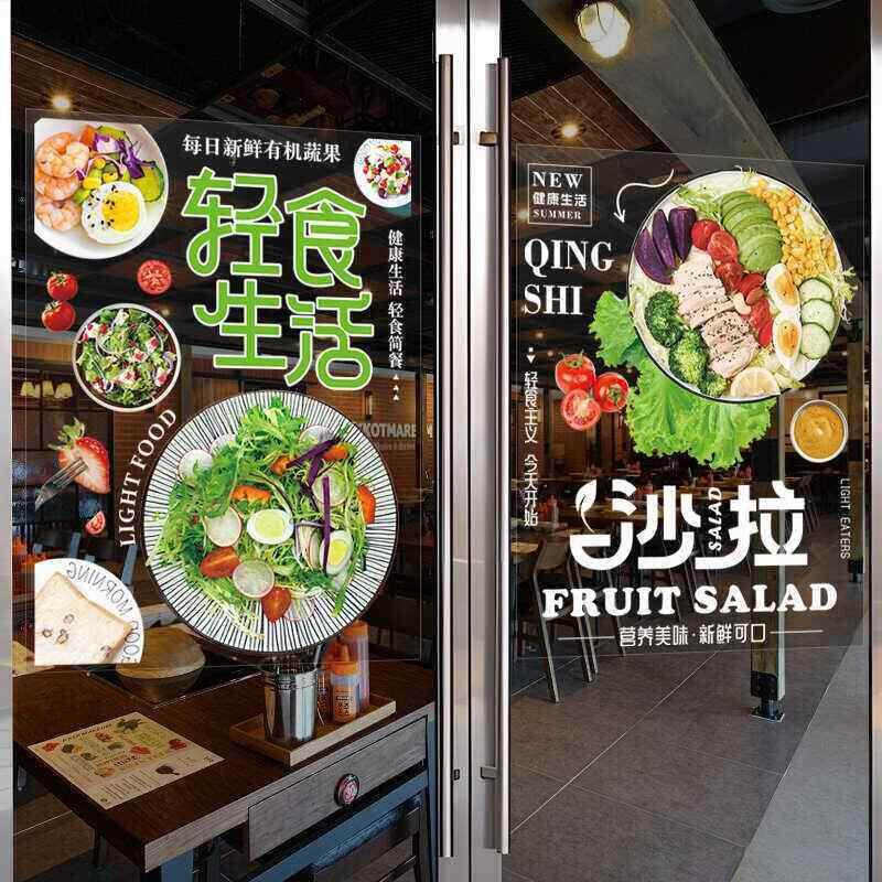 您的位置: 轻食主义餐厅饭店玻璃橱窗门贴纸减脂减肥素食简餐广告宣传装饰画