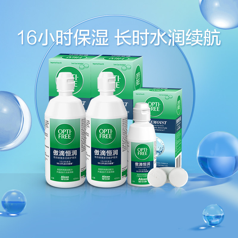 > 【自营】爱尔康傲滴近视美瞳隐形眼镜护理液恒润300ml*2+120ml组G