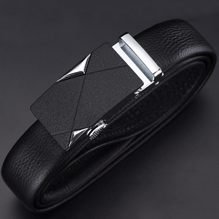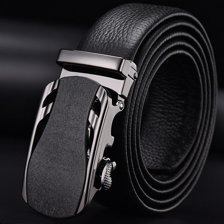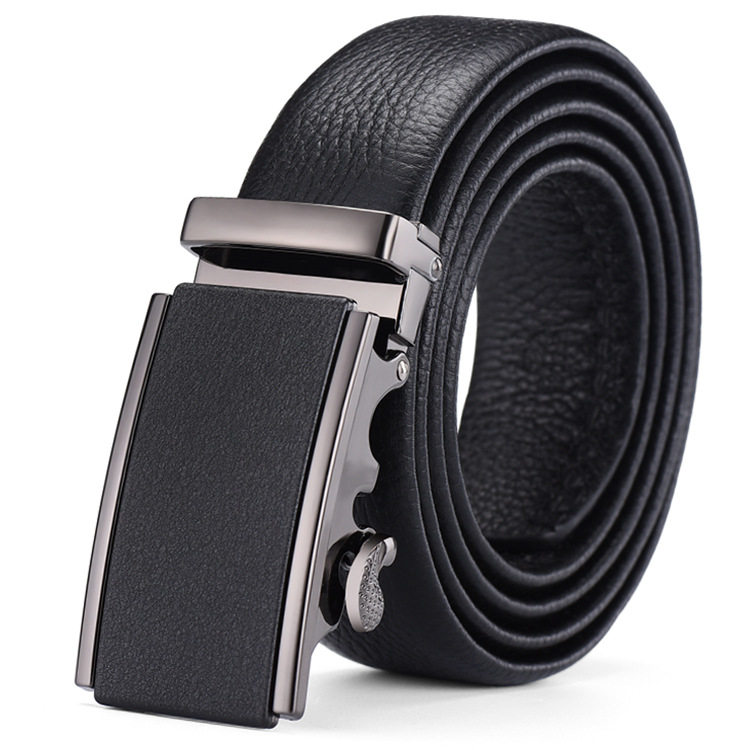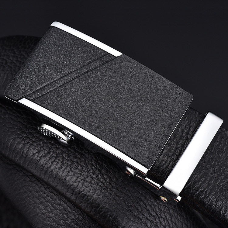 > 男士高级感荔枝纹头层牛皮合金自动扣皮带高端商务真皮腰带
