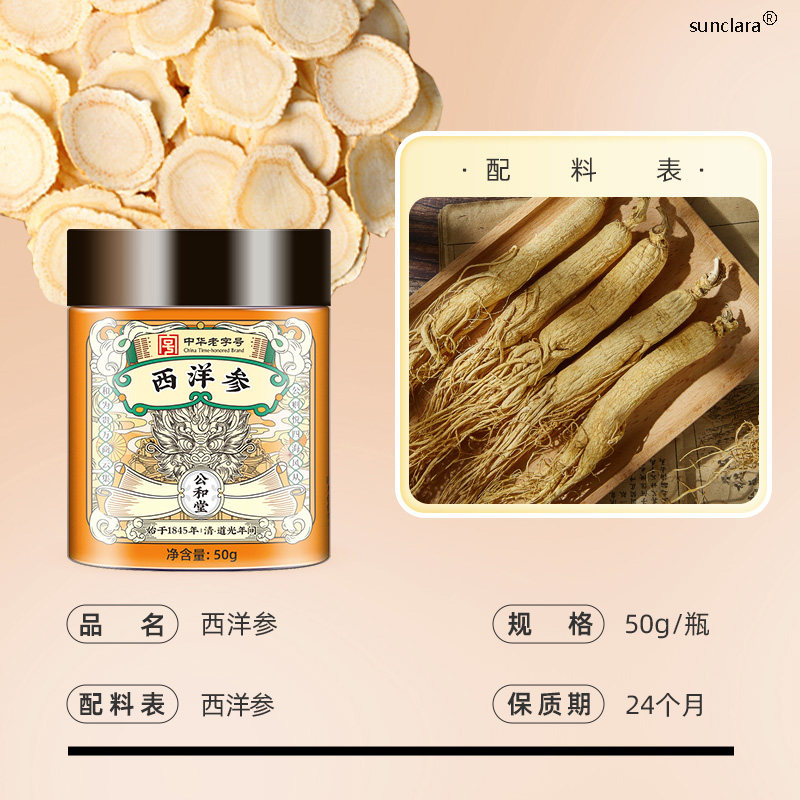 公和堂西洋参旗舰正品长白山花旗参片粉中草药材人参切片泡茶