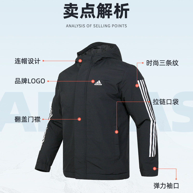 您的位置: Adidas阿迪达斯男子三条纹棉服连帽保暖运动休闲潮流外套