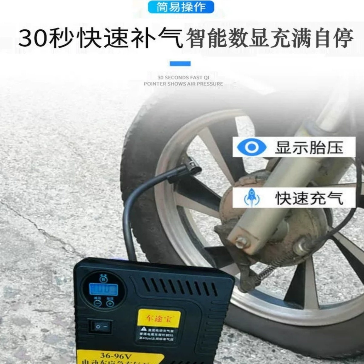 电瓶车电动充气泵便携式多功能车载打气筒真空胎48v60v72高压通用