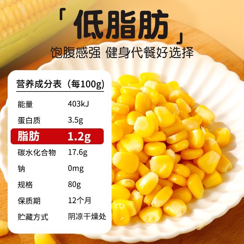 减肥主食粗粮0脂肪0卡无糖无添加剂减脂期解馋小零食玉米粒开袋即食水果芝士沙拉新打榨汁金黄低脂鲜甜真空小包装健身轻食代餐饱腹