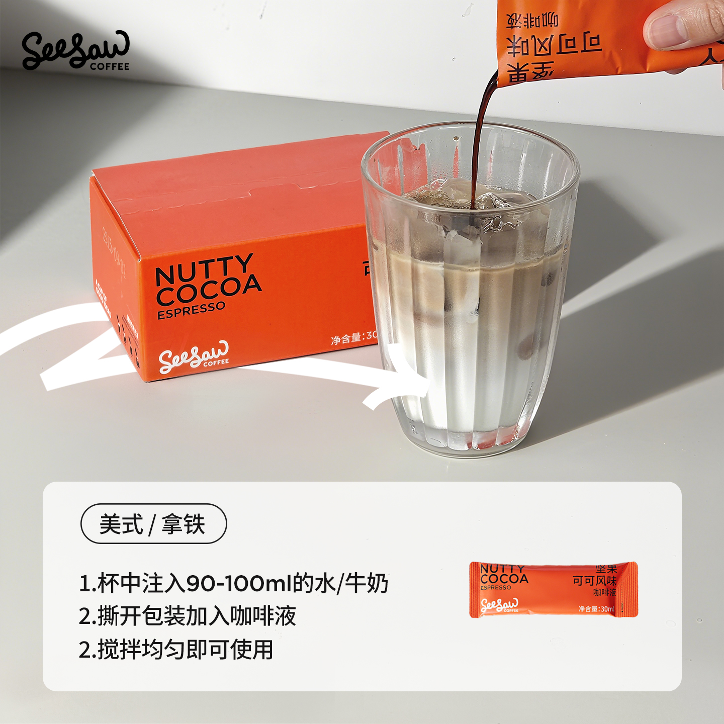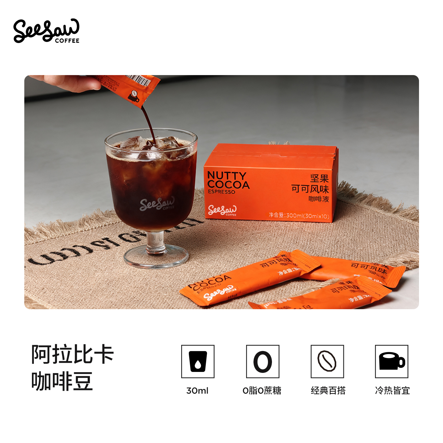【活动价72,官方立减23,到手49元,叠加9折消费券低至44元,折一条4.4元!】味蕾之舞,seesaw浓缩拿铁,每滴皆品质,创意满满,营养好选择!seesaw咖啡液,助力日常提神,坚果香浓,一触即发,seesaw冷萃冰滴咖啡液,畅享醇香,鲜萃意式风味,seesaw浓缩咖啡液,感受瞬间味觉盛宴