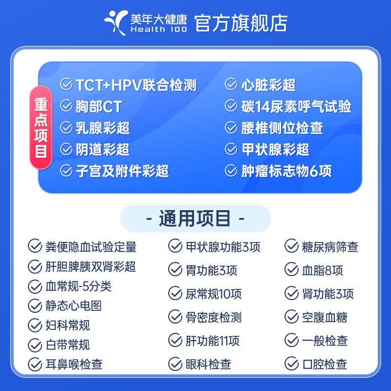 您的位置: 美年大健康旗舰店臻爱女神191TMMN00女士体检卡成人体检套餐HPV