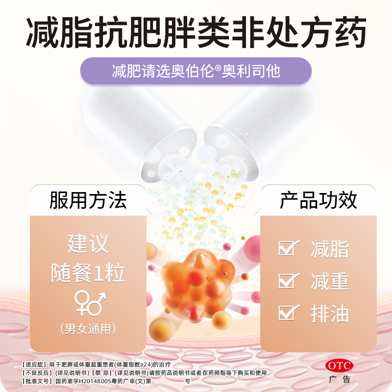 奥伯伦奥利司他胶囊减肥药减脂瘦身燃脂排油神器正品官方旗舰店
