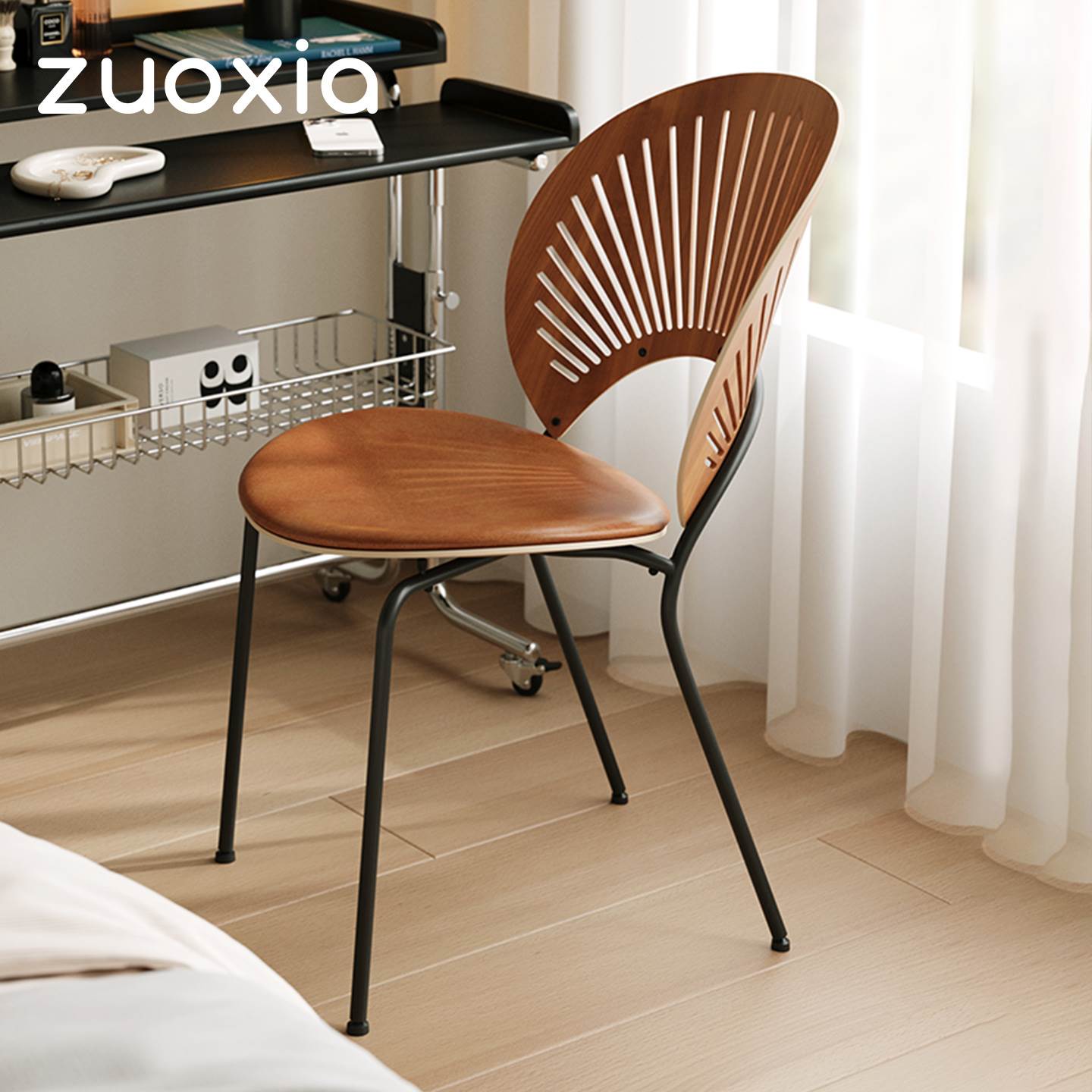 左下实木贝壳椅餐椅家用ins覆古椅子创意简约太阳椅vintage休闲 �