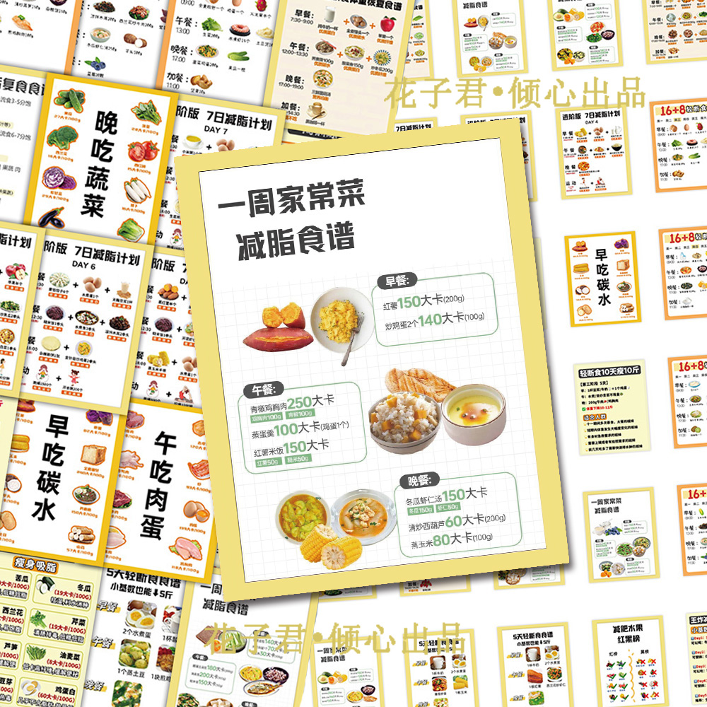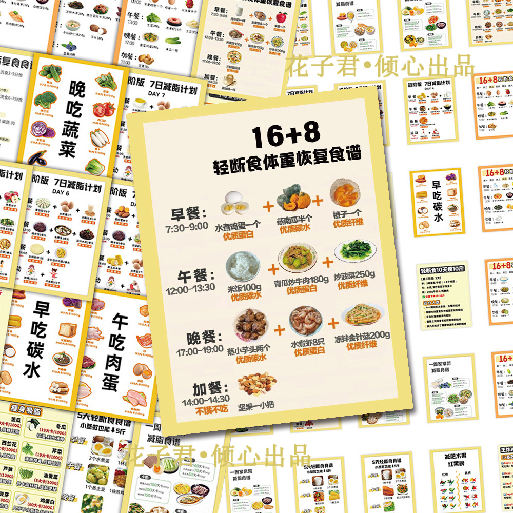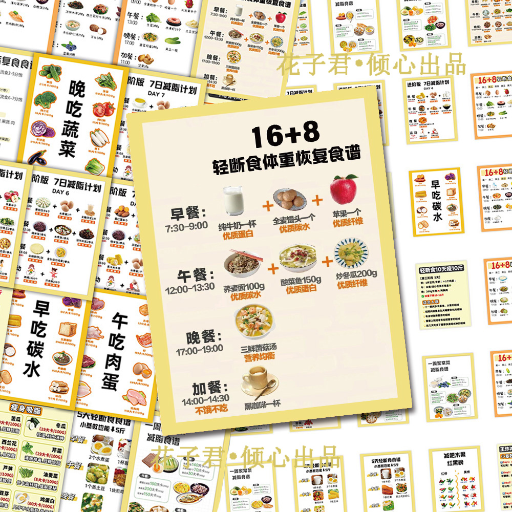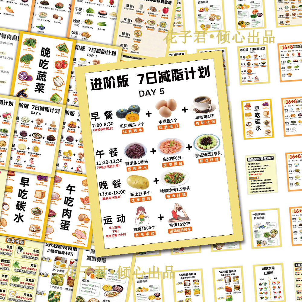 淘宝天猫96张健康低卡减脂减肥轻断食食谱贴纸饮食自律减脂餐装饰贴画桌面优惠券折扣价格–彩云间