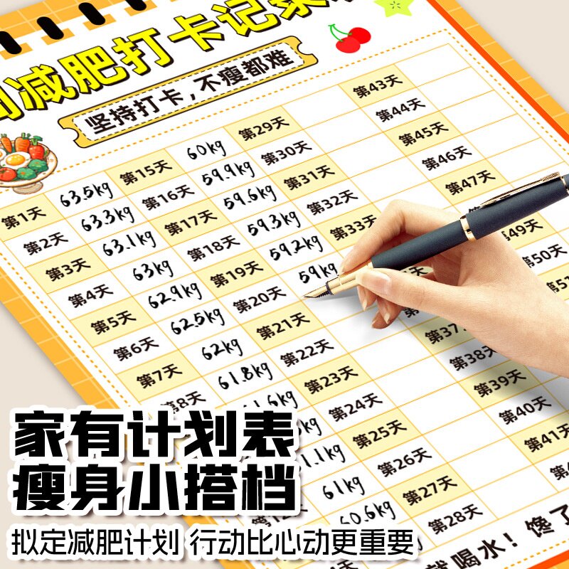 您的位置: 代发减肥打卡计划表减肥食谱表打卡记录表健身运动励志计划墙贴