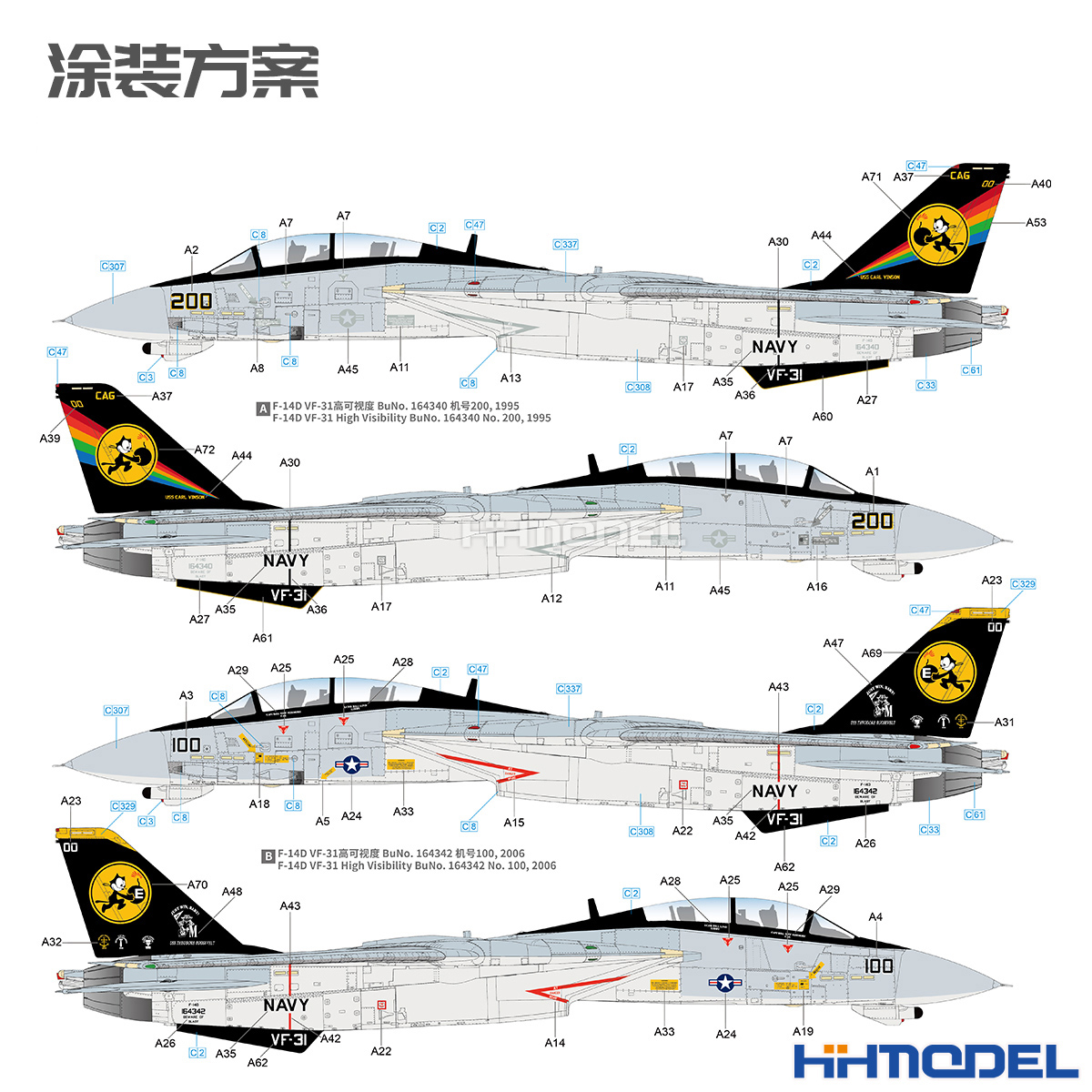 ▲长城S4822 1/48 F-14D战斗机 VF-31中队纪念涂装限量版附飞行员