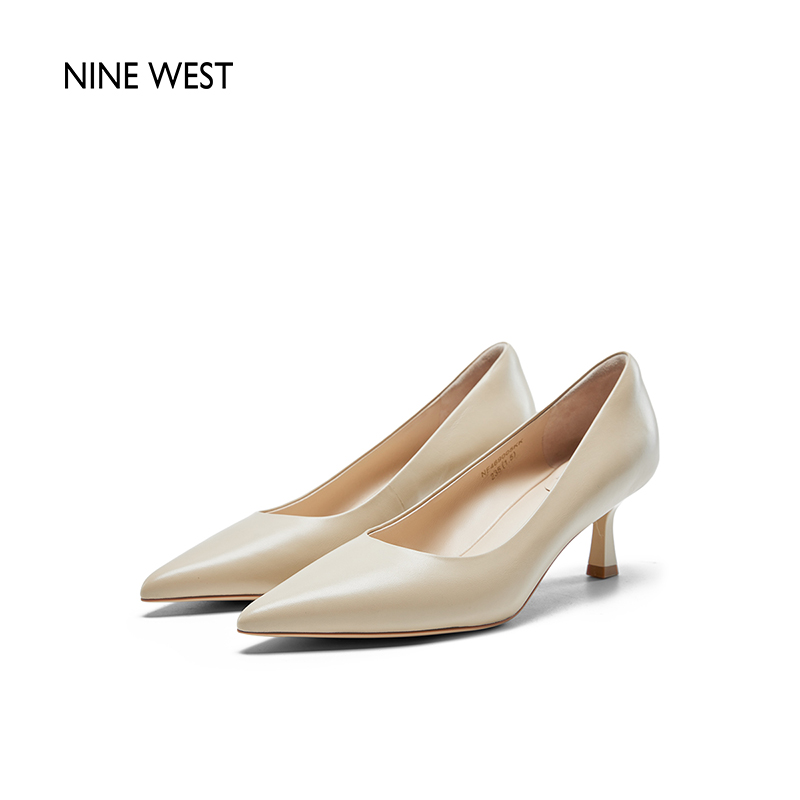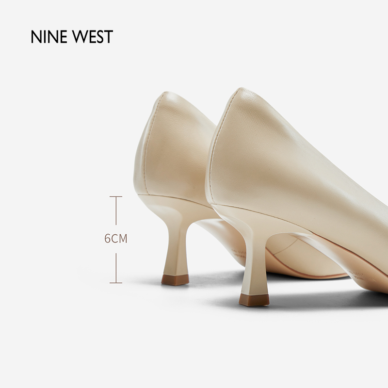 Nine West/玖熙朝露步影真皮小猫跟单鞋2025秋新款浅口通勤高跟鞋