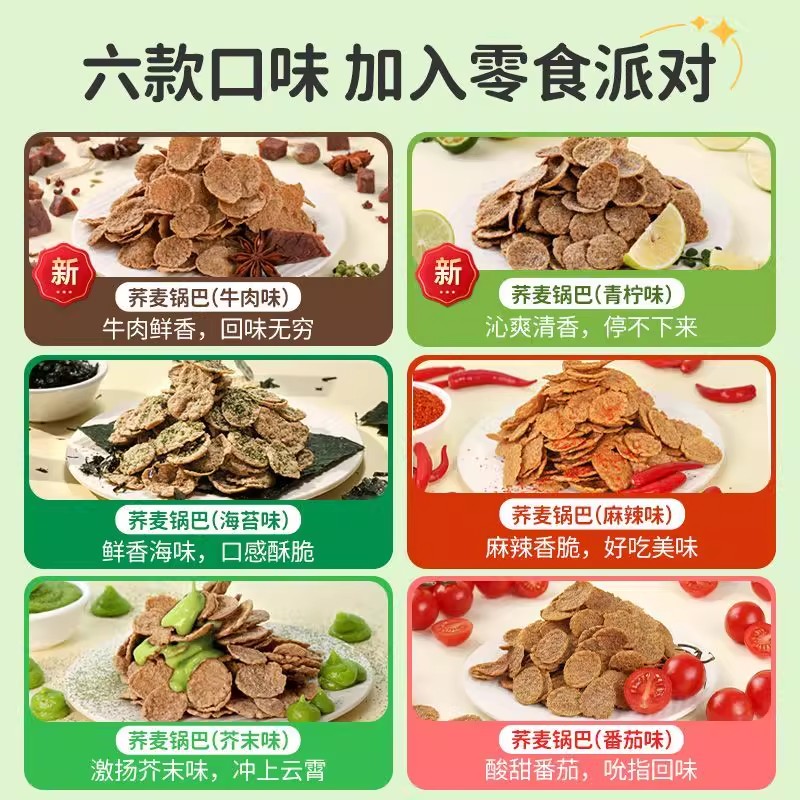荞麦锅巴非油炸减肥解馋小零食减脂自律儿童粗粮海苔早餐荞麦脆孕妇鹰嘴豆女士居家低卡高纤网红款追剧营养低脂办公室饱腹抗饿专用