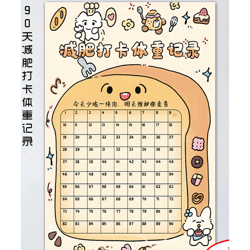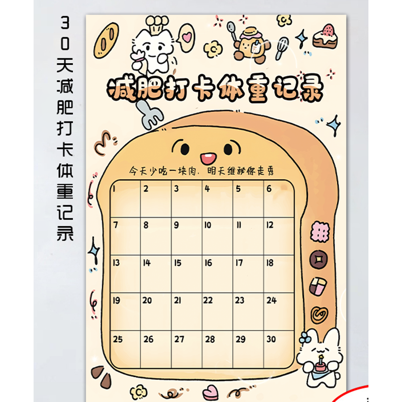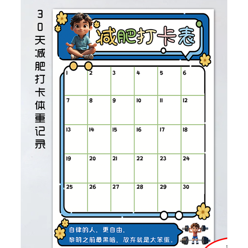 减肥打卡记录表体重计划表墙贴30天60天100天体重自律不干胶贴纸