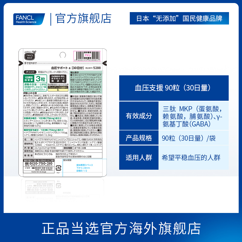 > FANCL计压支援90粒*2平衡舒压γ-氨基丁酸缓疲不易晕指标三肽MKP