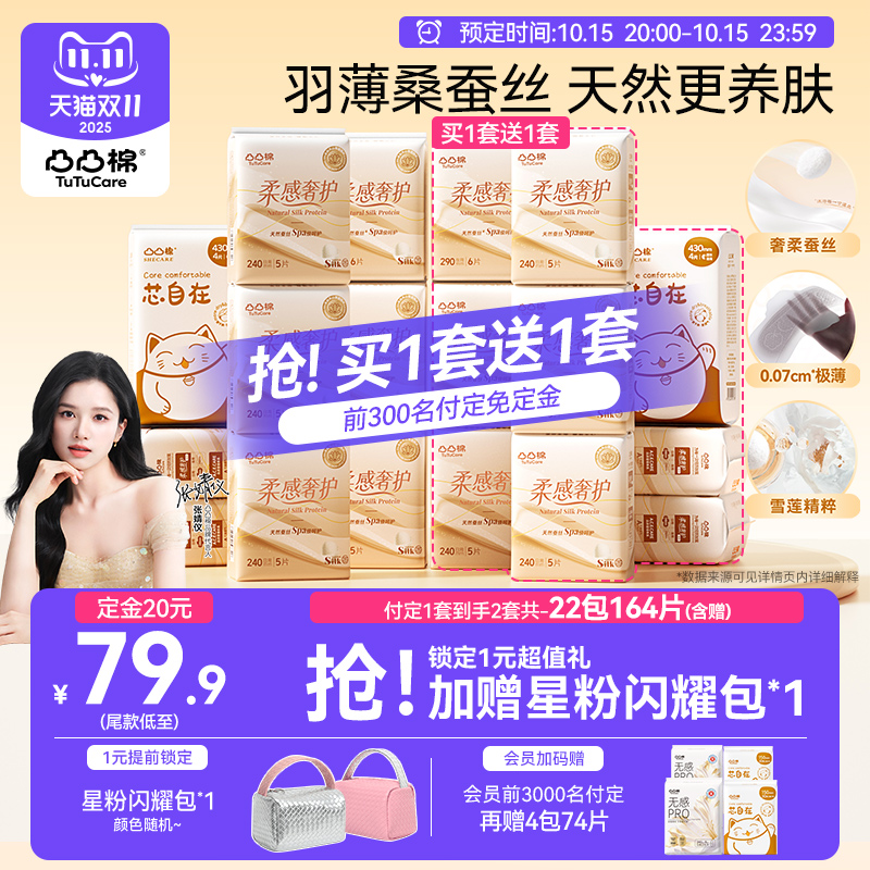 淘宝天猫【双11预售 提前加购】凸凸棉奢柔天然蚕丝卫生巾敏感肌姨妈巾薄优惠券折扣价格–彩云间