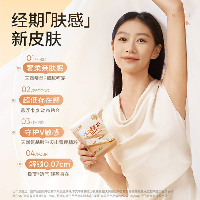 【双11预售 提前加购】凸凸棉奢柔天然蚕丝卫生巾敏感肌姨妈巾薄