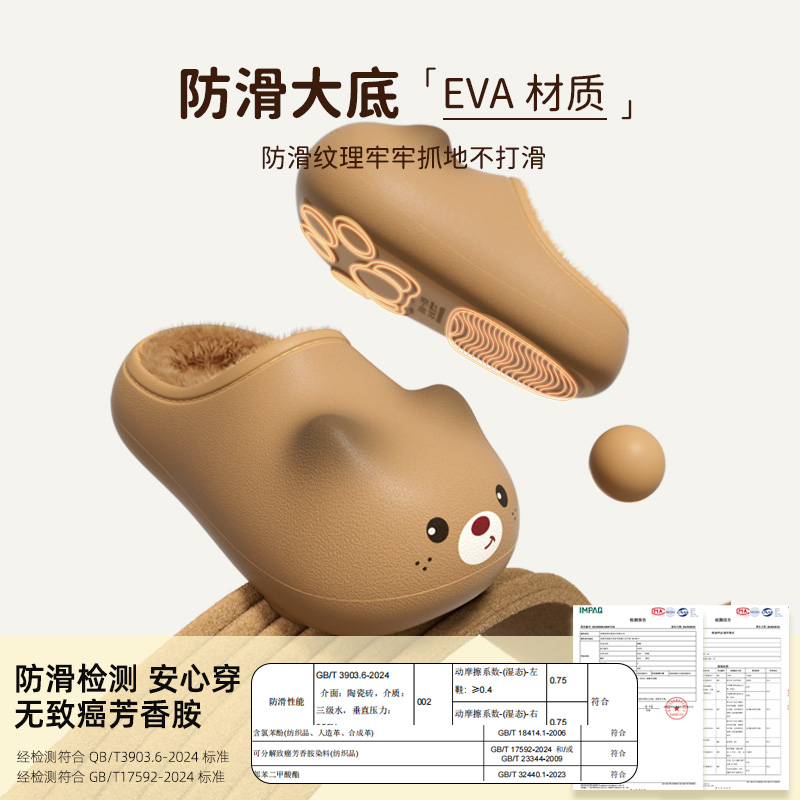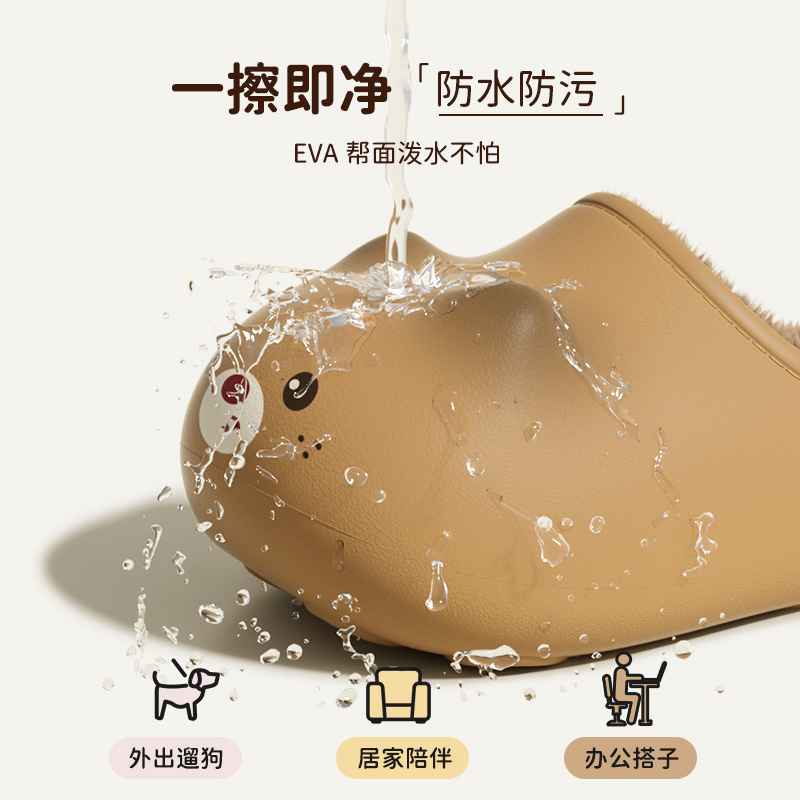 chedoir墩墩熊勃肯棉拖鞋女款冬季半包跟防水防滑EVA情侣棉拖男士