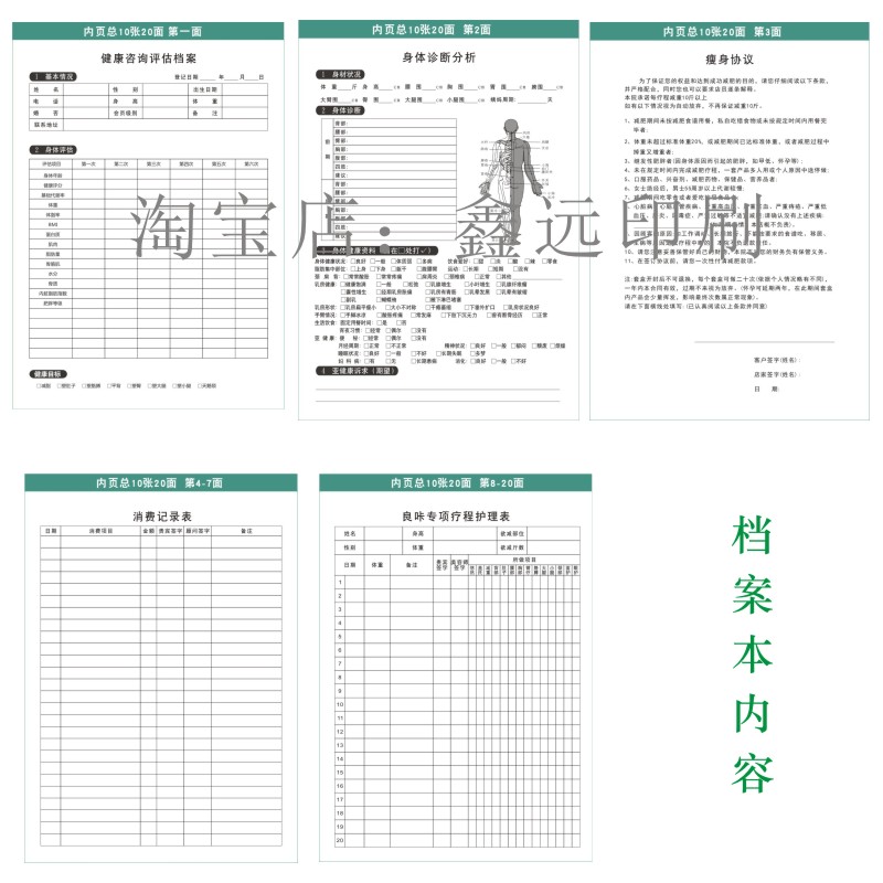 淘宝天猫良咔档案本美容院顾客减肥瘦身塑形登记簿客户会员资料体验卡定制优惠券折扣价格–彩云间