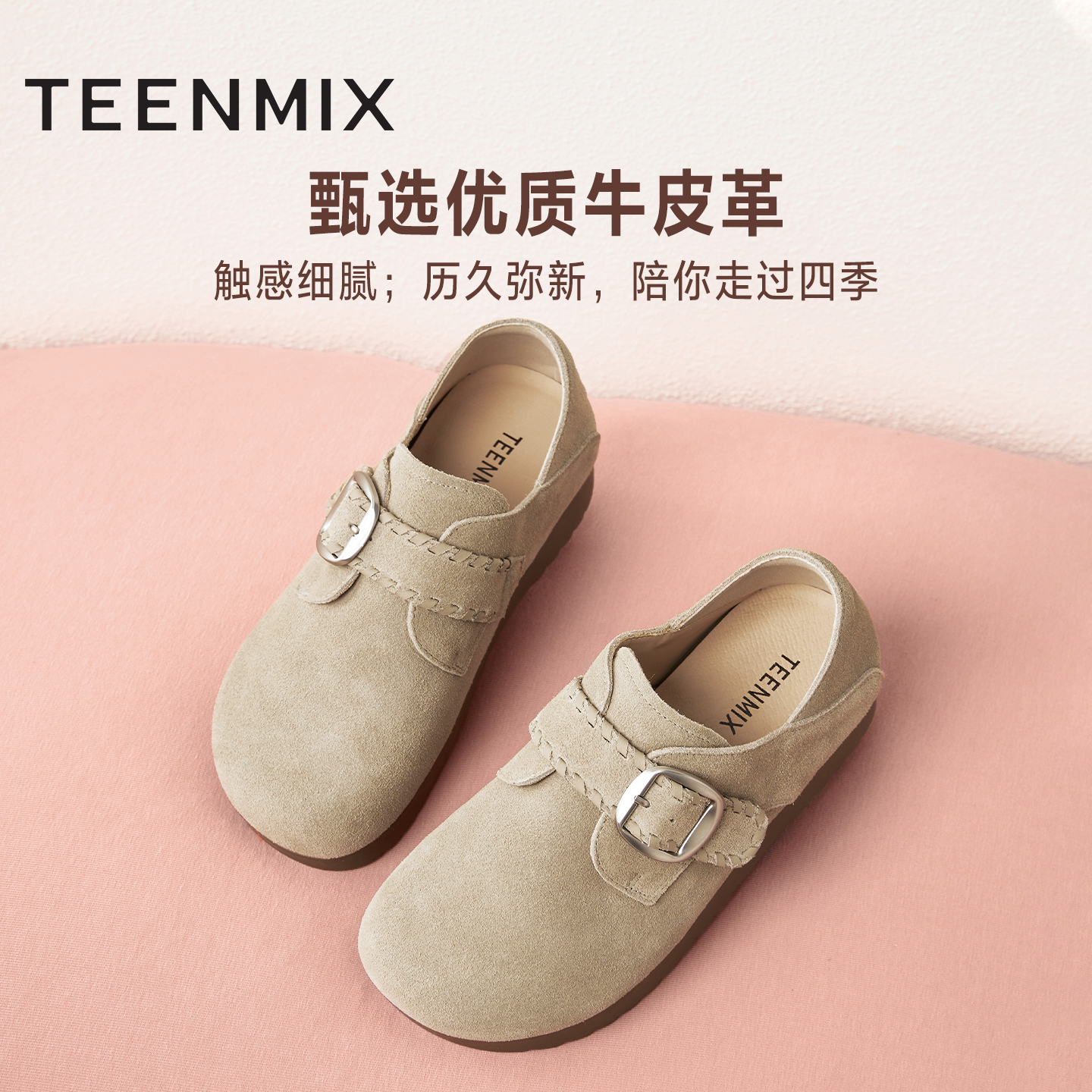 【双11预售】天美意复古厚底全包勃肯鞋女休闲单鞋半拖2025秋新款