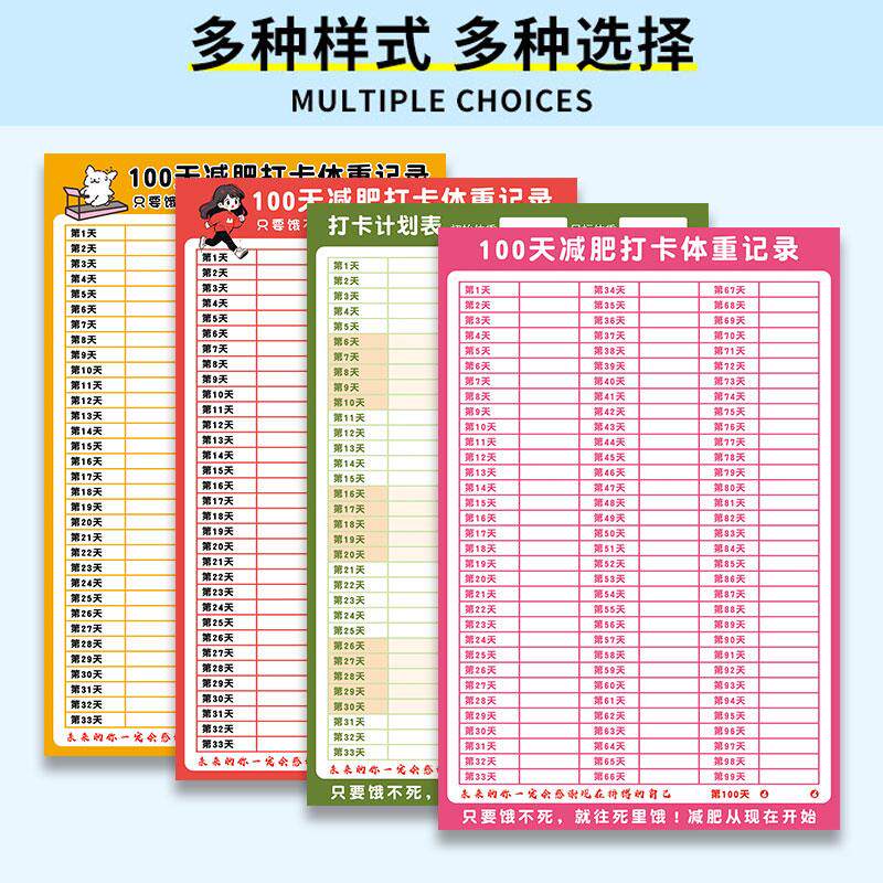 淘宝天猫减肥计画 划表体重打卡记录表100天减肥计画 划表墙贴自律神器30天60天90天百日墙贴纸定制瘦身健身运动励志优惠券折扣价格–彩云间