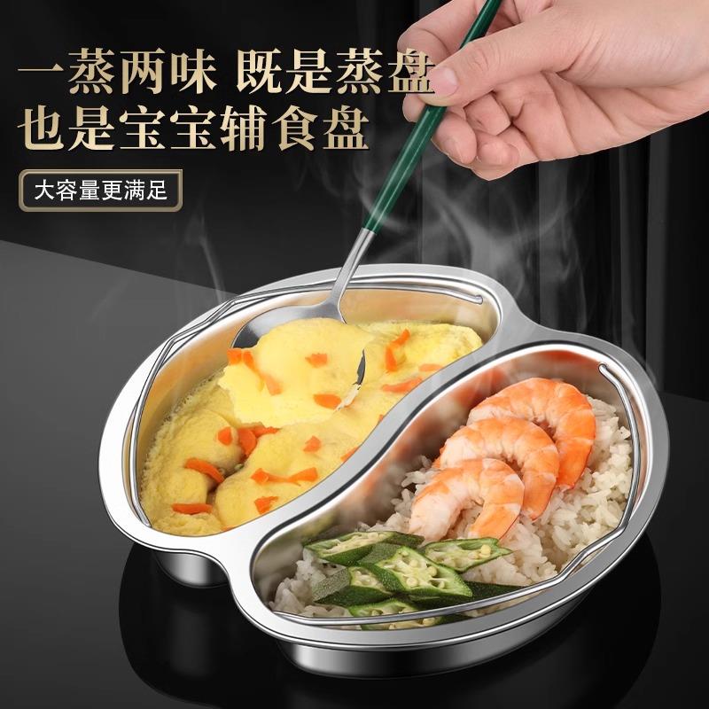 三格不锈钢分餐盘高级感家用减肥大人早餐蒸饭神器蒸米饭分隔蒸盘