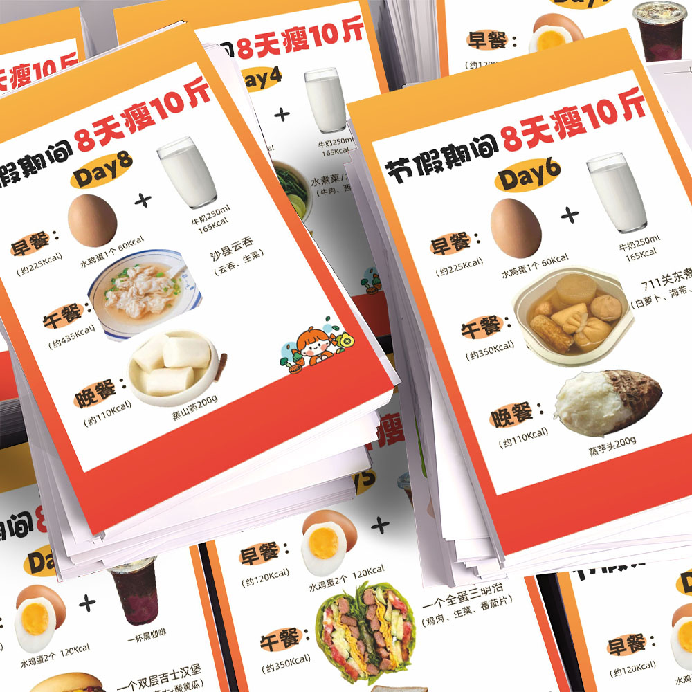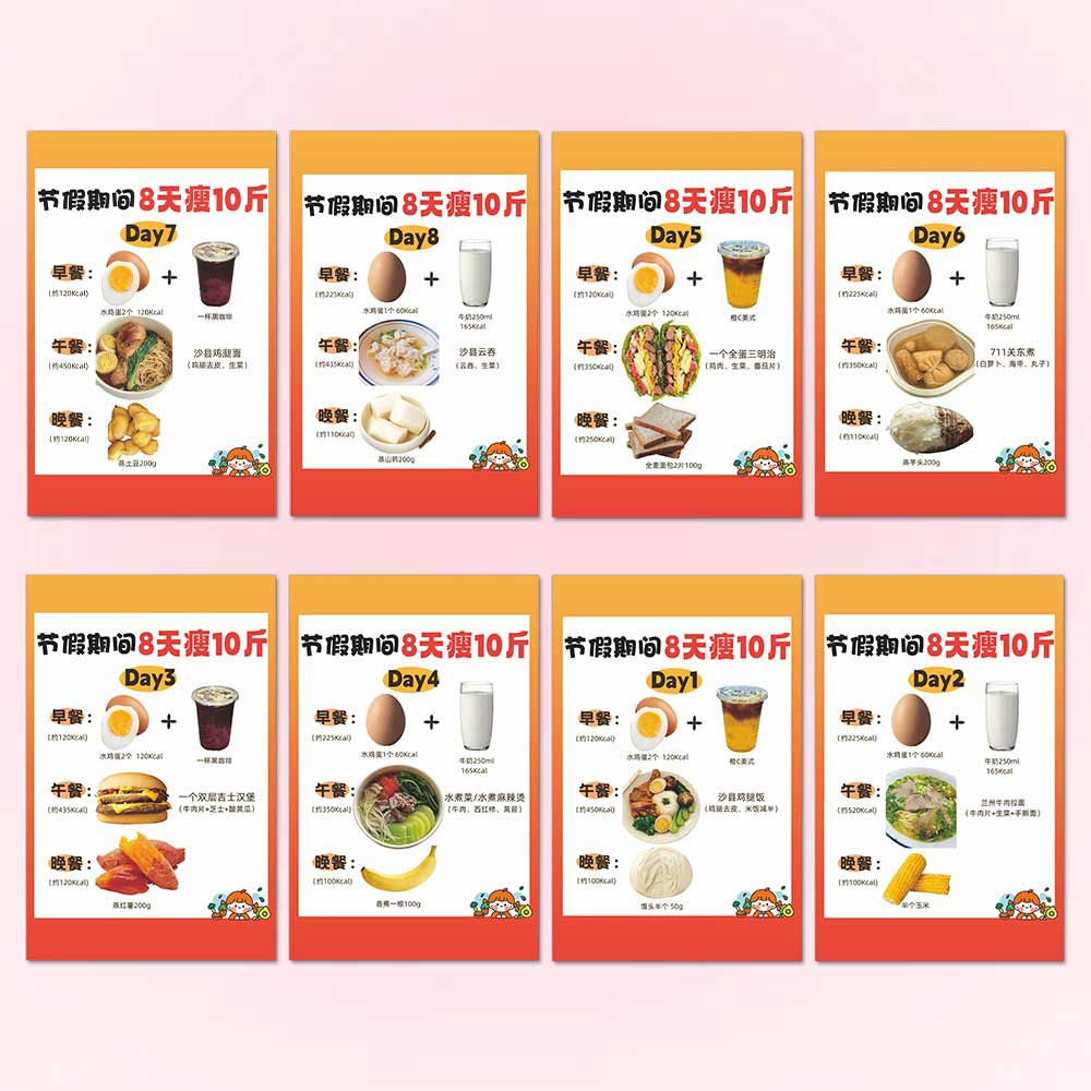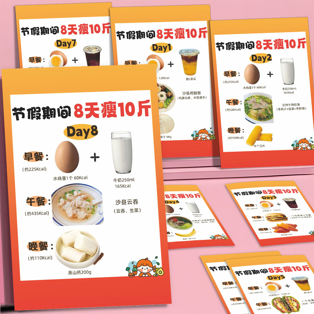 节假期间八天瘦十斤减肥食谱轻断食营养科学掉秤合理膳食搭配贴画