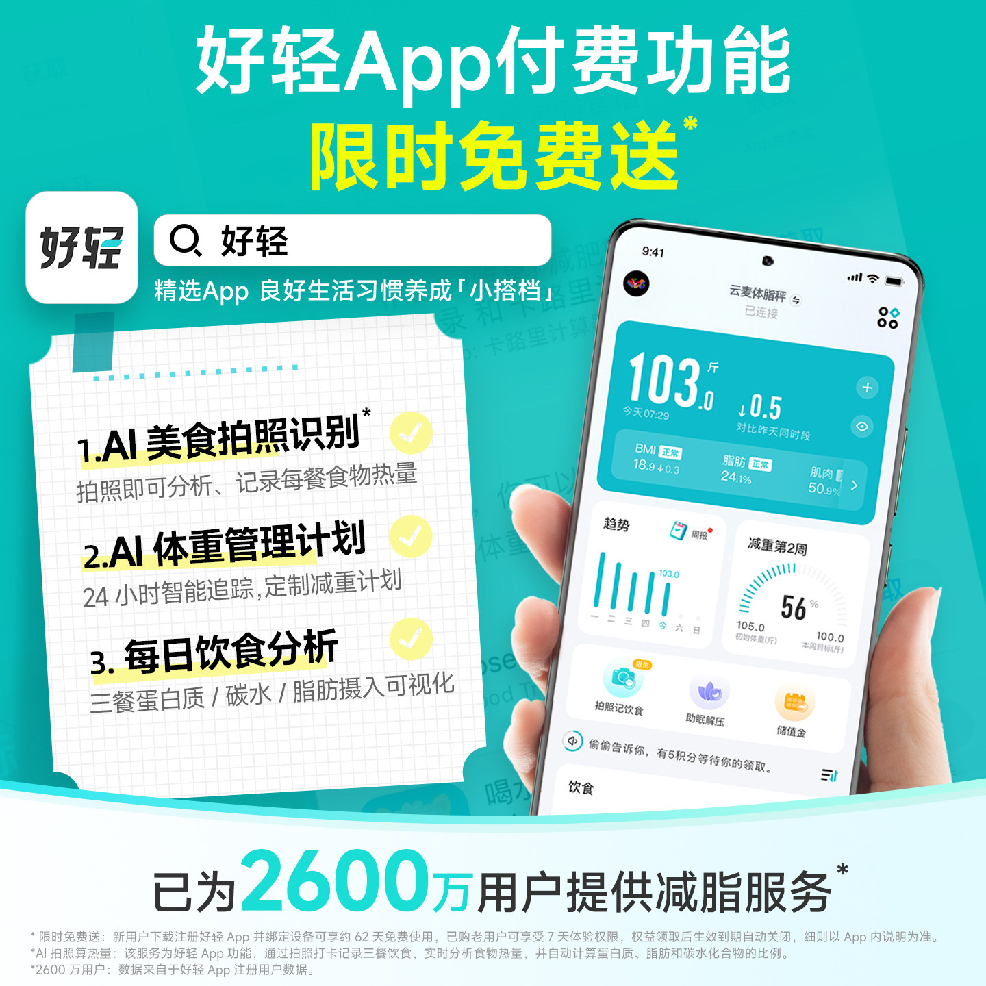 【新品】云麦mini3s智能体脂秤家用体重秤精准称重电池款宿舍减肥