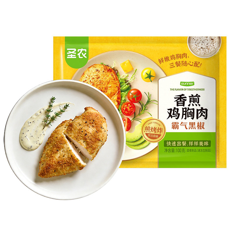 您的位置: 圣农香煎鸡胸肉减脂减肥餐0脂肪100g/包黑椒味冷冻半成品健身代餐